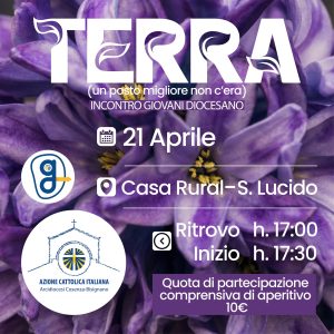 Ritornano gli incontri giovani dell’Azione cattolica diocesana. Dopo un periodo di pausa, l’appuntamento è previsto il a , per stare insieme, scoprire le bellezze del territorio e per un bellissimo aperitivo al tramonto. I punti di ritrovo saranno: Sant’Aniello, ore 16:00, oppure direttamente presso Casa Rural alle ore 17:00. Per iscriversi basta compilare il form […]
