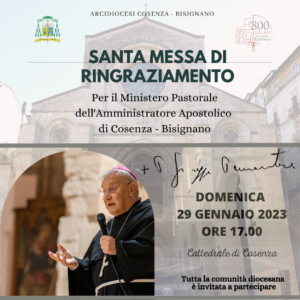 Fa il suo ingresso nella casa del Padre S. E. Mons. Augusto Lauro, già Vicario generale e Vescovo ausiliare della nostra Arcidiocesi e Vescovo Emerito di San Marco Argentano – Scalea. La salma sarà esposta nella Cattedrale di Cosenza mercoledì 8 marzo dalle ore 10.00. Alle ore 16.30 l’Arcivescovo, Mons. Checchinato presiederà una Celebrazione Eucaristica […]
