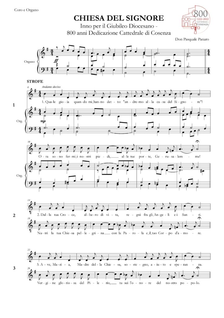 Il video e gli spartiti dell’Inno Ufficiale per il Giubileo 2022 negli 800 anni Consacrazione della Chiesa Cattedrale di Cosenza