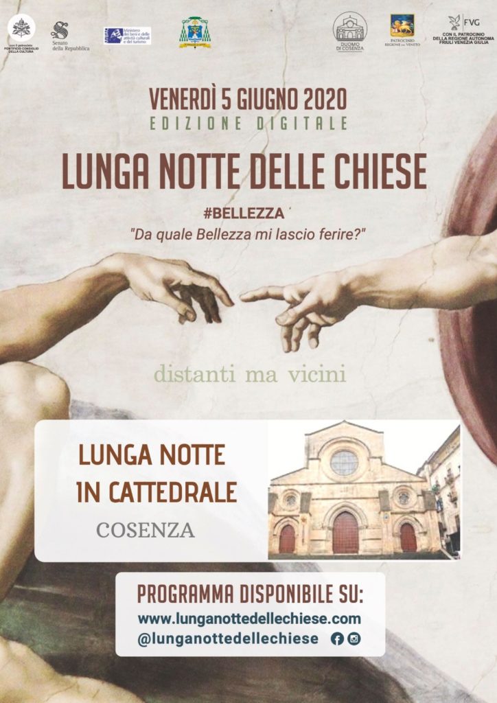 La Cattedrale di Cosenza aderirà all’iniziativa offrendo un racconto dei suoi luoghi, l’evento dal titolo Lunga notte in Cattedrale, un virtual tour con una speciale colonna sonora, si potrà seguire da venerdì 5 giugno sui canali dell’ Arcidiocesi di Cosenza – Bisignano, della Cattedrale di Cosenza e del settimanale Parola di Vita.