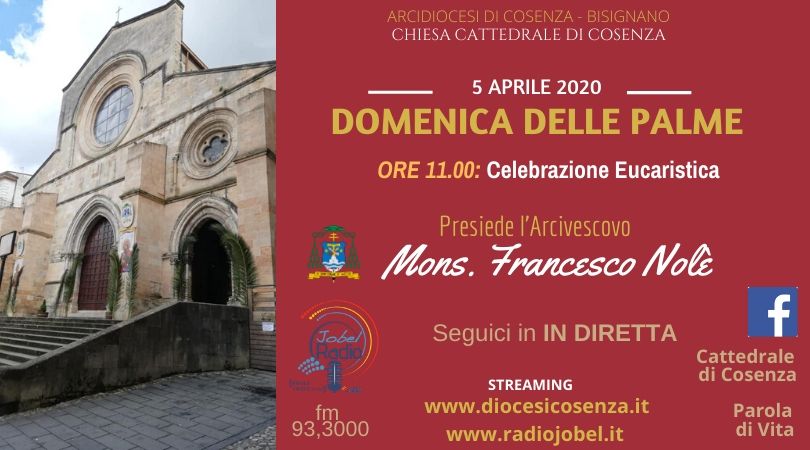 Su questa pagina è possibile seguire in diretta le celebrazioni di Domenica delle Palme e del Triduo Pasquale dalla Cattedrale di Cosenza, presiedute dall’Arcivescovo, Mons. Francesco Nolè.