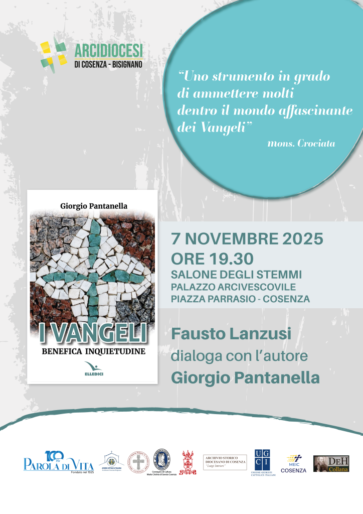 Venerdì 7 novembre alle 19.30 nel Salone degli Stemmi del Palazzo Arcivescovile si terrà la presentazione del libro “I Vangeli – Benefica inquietudine” di Giorgio Pantanella edito da Elledici.